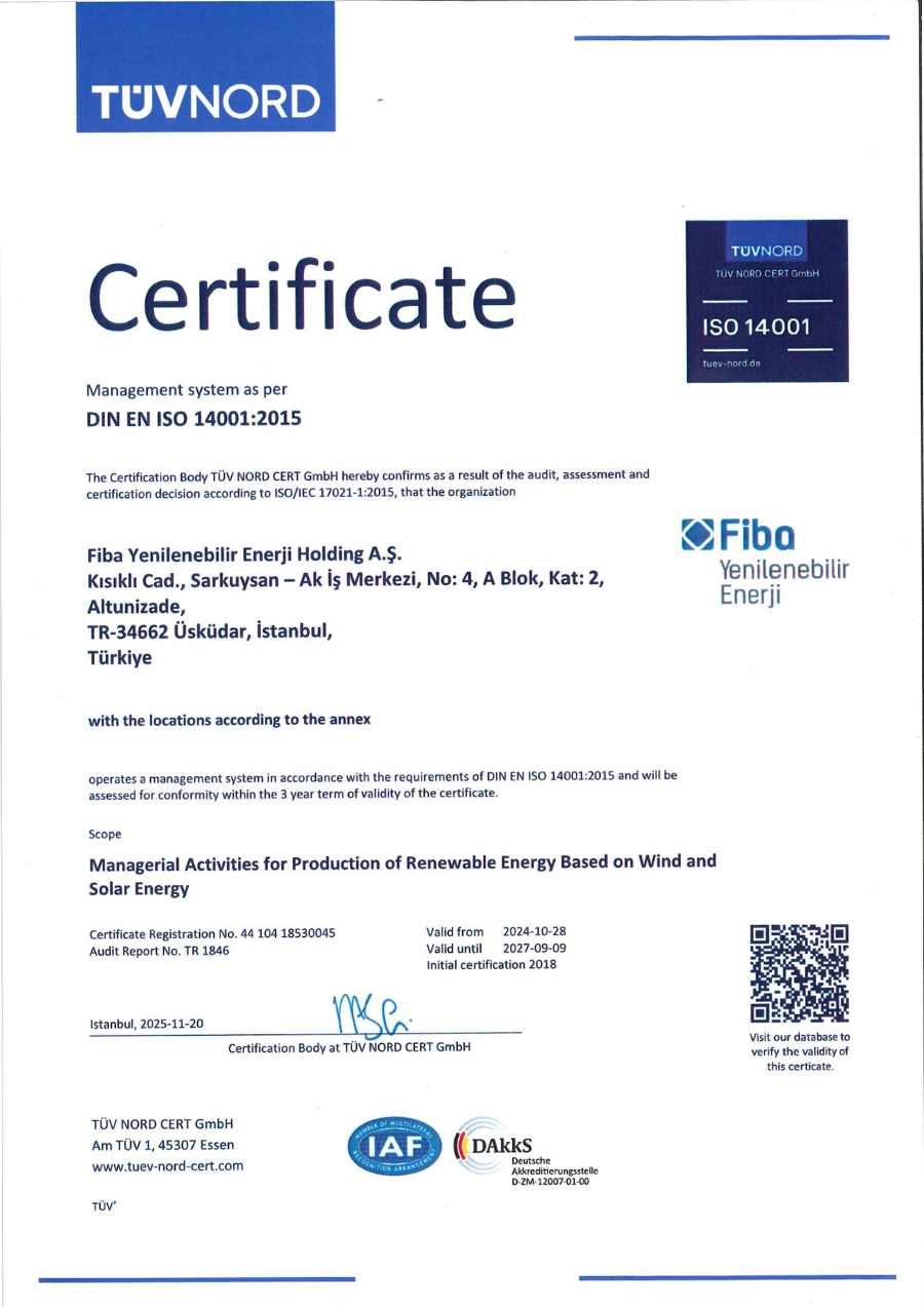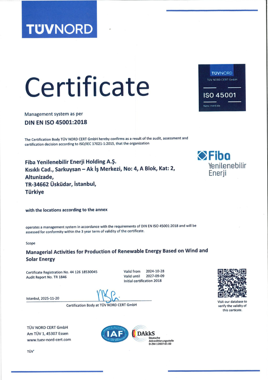 GÜNDER is a non-governmental organization recognized at the international level, working to promote solar energy and build a sustainable energy future. It operates to support the development of the solar energy sector in Türkiye, bring together stakeholders in the industry, and produce innovative solutions. Since 2024, Fiba Renewables has been a member of GÜNDER, demonstrating its collaboration with organizations that promote the use of solar energy and support sustainable energy goals.