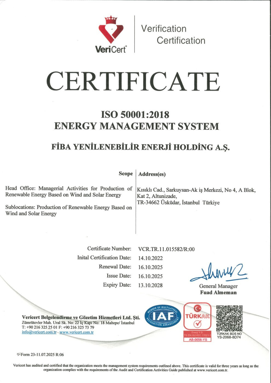 CDP is a non-profit organization that runs a global reporting system to help investors, companies, cities, states, and regions manage their environmental impacts. The global economy sees CDP as the gold standard for environmental reporting, with the richest and most comprehensive data set on corporate and city actions. Fiba Renewables is committed to sharing its climate action statements through the CDP platform, which it joined as a participant in 2023.